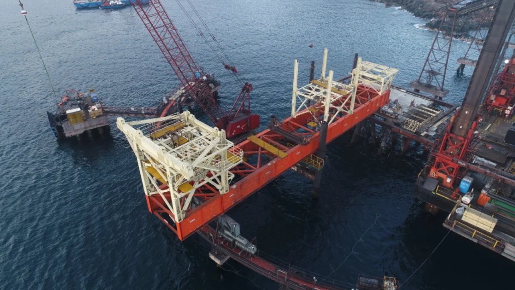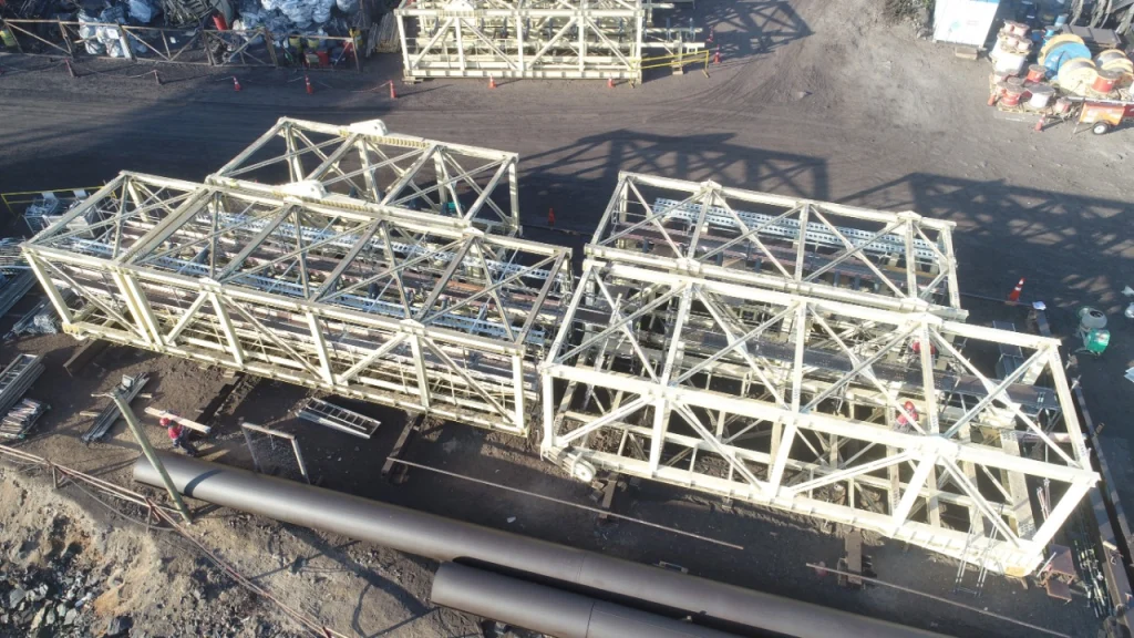 La ejecución se llevó a cabo bajo una estrategia de suministros “Just-in-Time”, coordinando el transporte de componentes estructurales de gran tonelaje desde nuestra planta hasta el terminal marítimo. La movilización fue sincronizada milimétricamente con el ritmo de montaje en el muelle, superando los complejos desafíos de espacio restringido y la continuidad operacional del puerto.