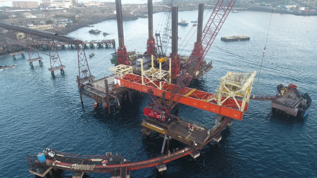 Restitución y modernización de la infraestructura portuaria crítica mediante un sistema de embarque de última generación, diseñado para maximizar la transferencia continua de pellets de hierro de forma segura, eficiente y resiliente ante las severas condiciones del entorno oceánico.