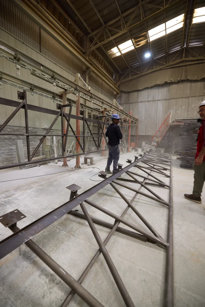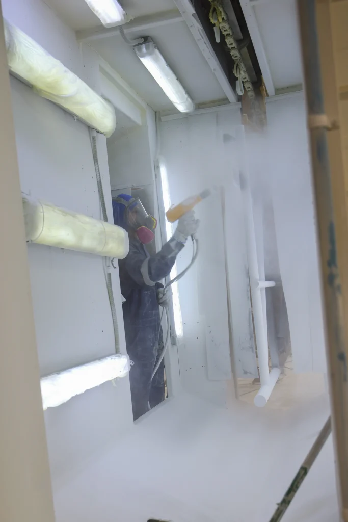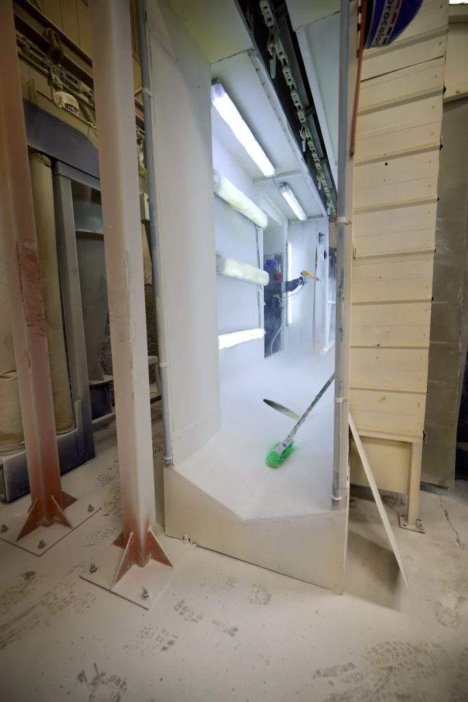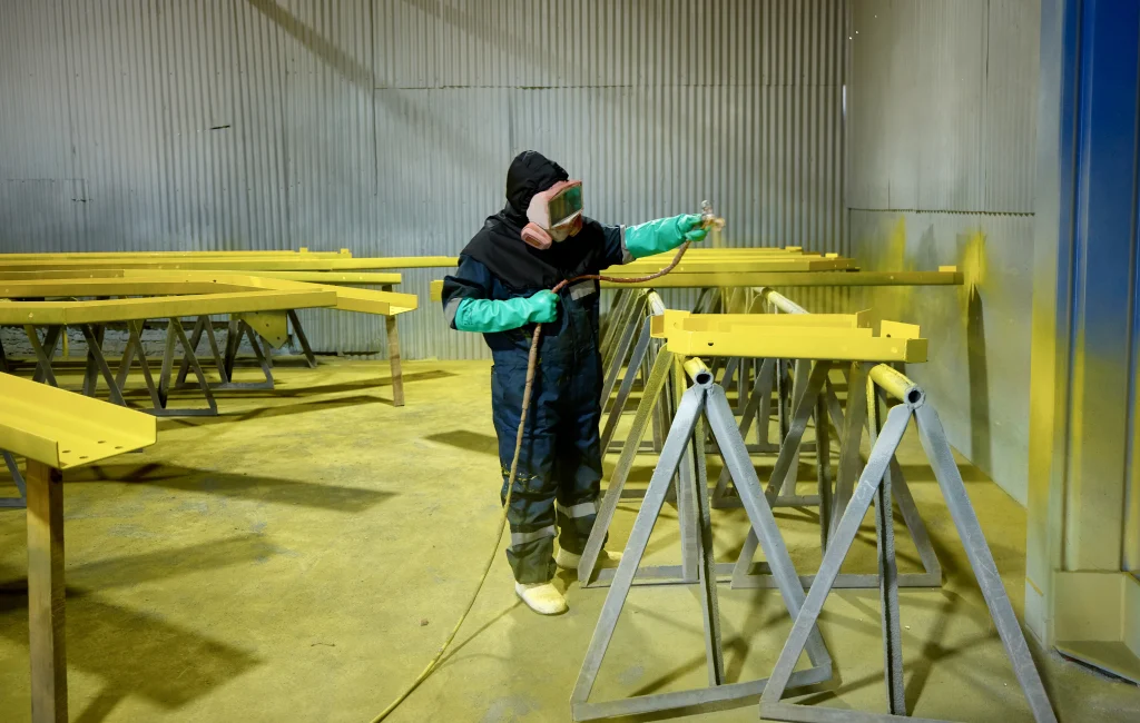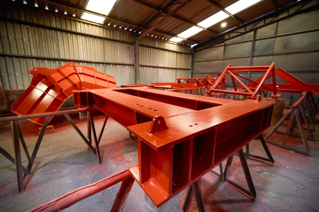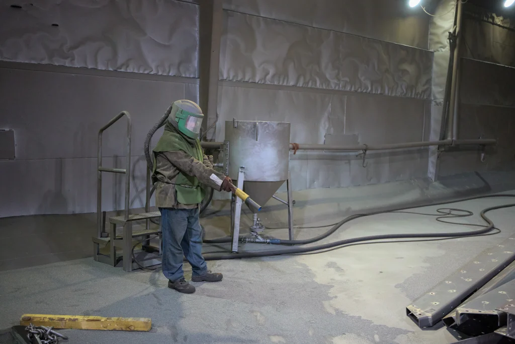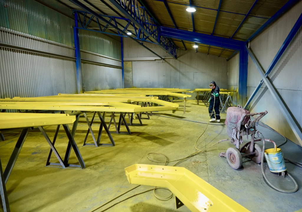 Tratamientos anticorrosivos bajo normas SSPC, mediante granallado manual y automático en planta. La aplicación de pintura se realiza en condiciones ambientales controladas, asegurando una adherencia óptima y la vida útil de los componentes.